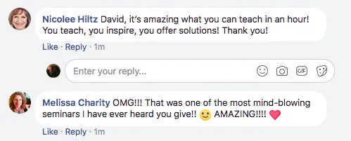 Because of the results his clients have achieved, along with his dedication, David’s coaching has expanded to more than 30 countries, and he has been featured on Forbes, CBS, NBC, Wall Street Journal, Inc, Entrepreneur and Fox. He is also the bestselling author of The Millions Within, a book focusing on intention, focus and awareness to build your dream business and life.